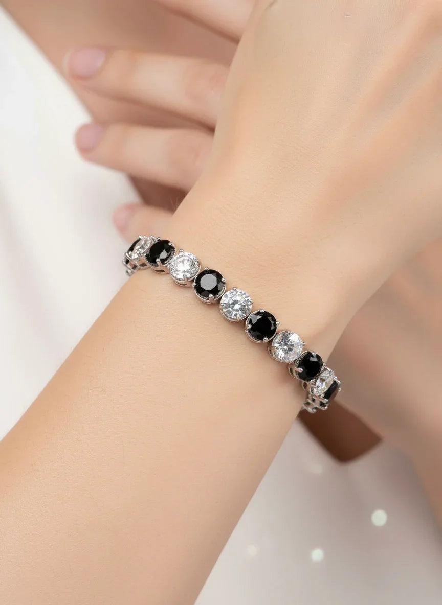 Brățară Tennis din inox 18,5 cm – design elegant cu pietre albe și negre