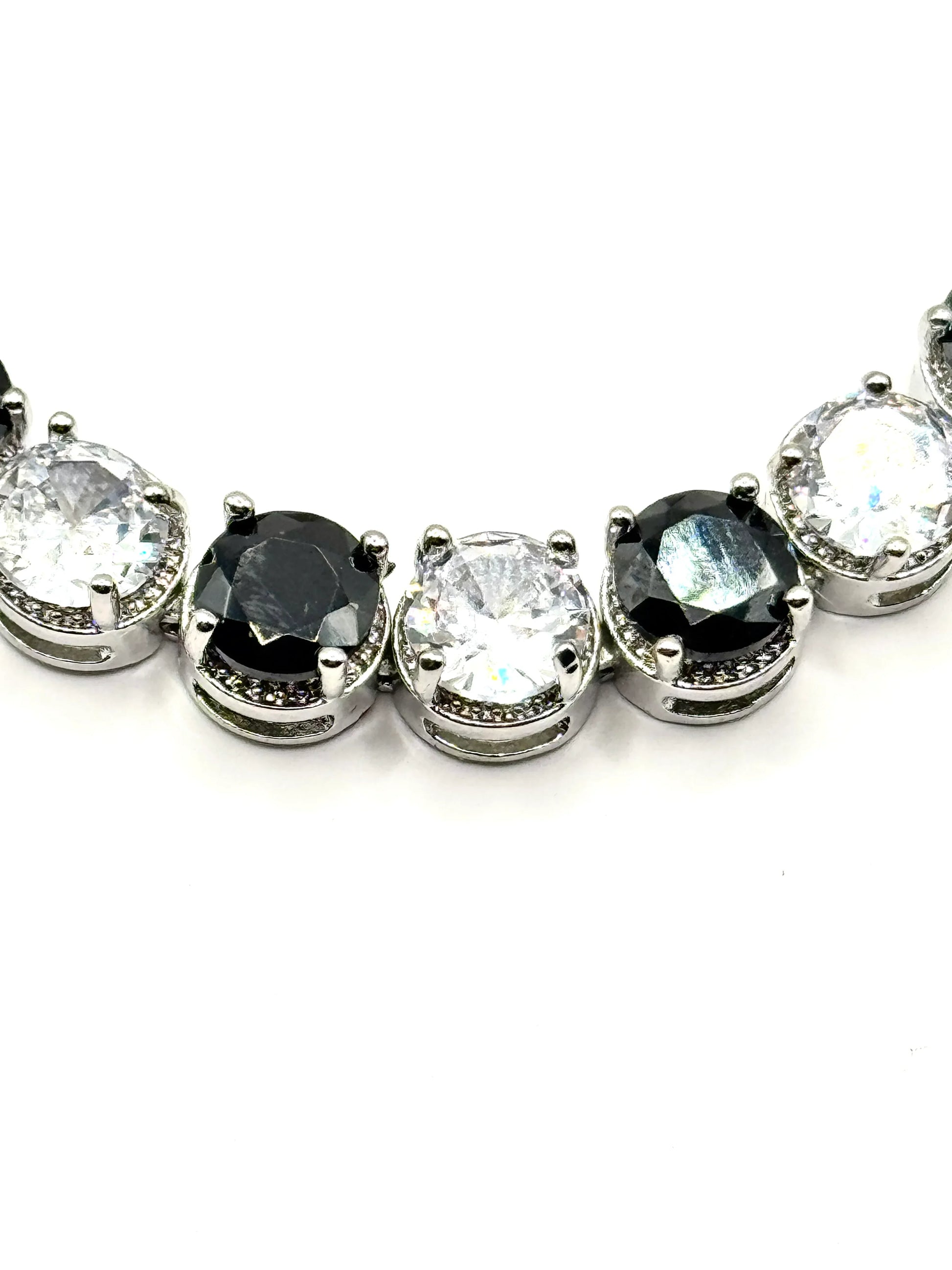 Design Tennis clasic – pietre rotunde montate simetric, cu alternanță alb-negru pentru un efect vizual deosebit.
