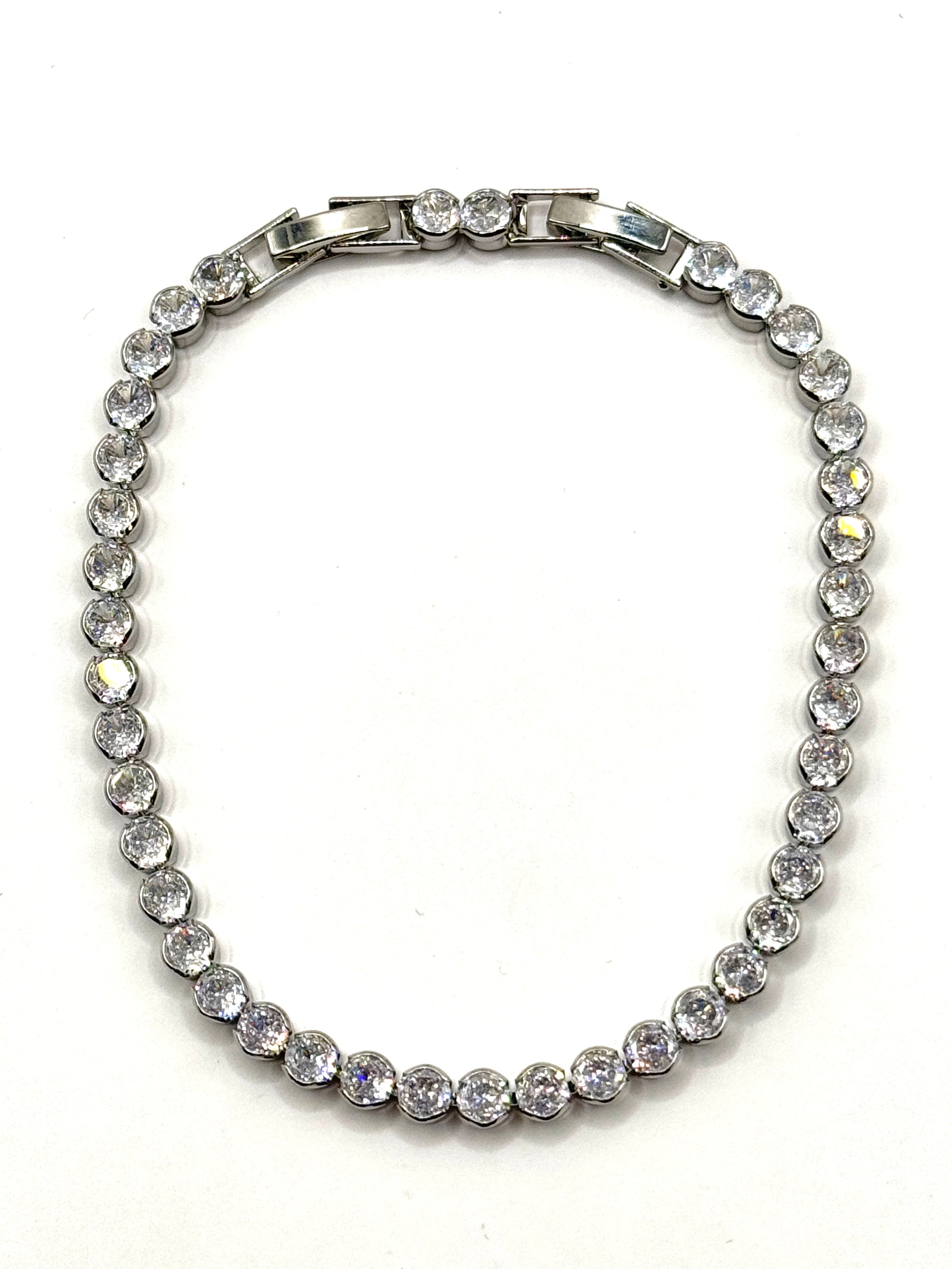 Stralucire clasica – bratara Tennis Rotund din inox, lungime 20 cm, este creata pentru femeile care apreciaza bijuteriile sofisticate. Pietrele rotunde aliniate uniform reflecta lumina si ofera un efect vizual de diamant autentic, completand perfect orice tinuta.