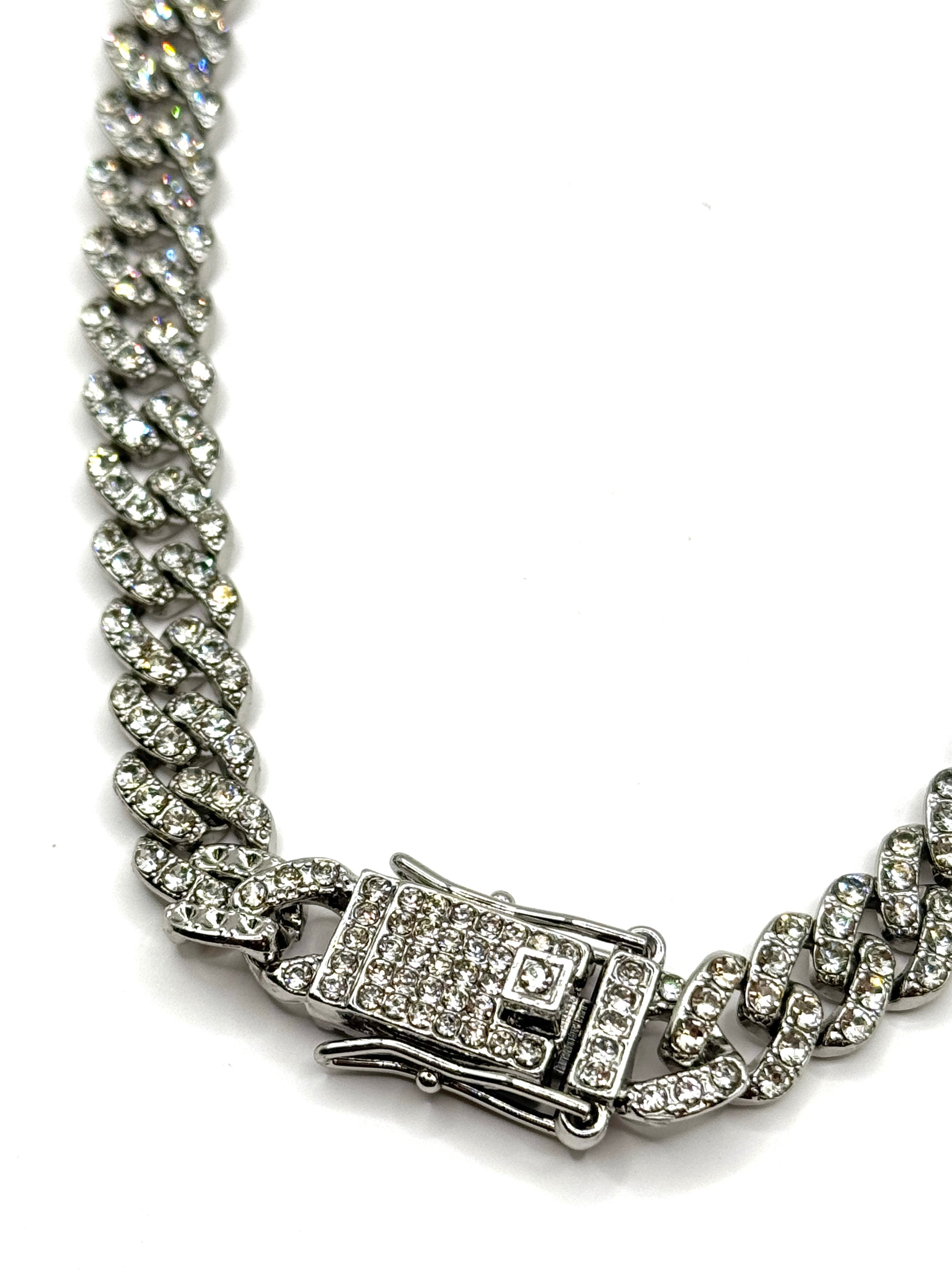 Poarta colierul Cuban Silver 8mm impreuna cu bratari subtile sau alte bijuterii argintii pentru un look echilibrat si stilat. Se potriveste cu tinute casual sau elegante.