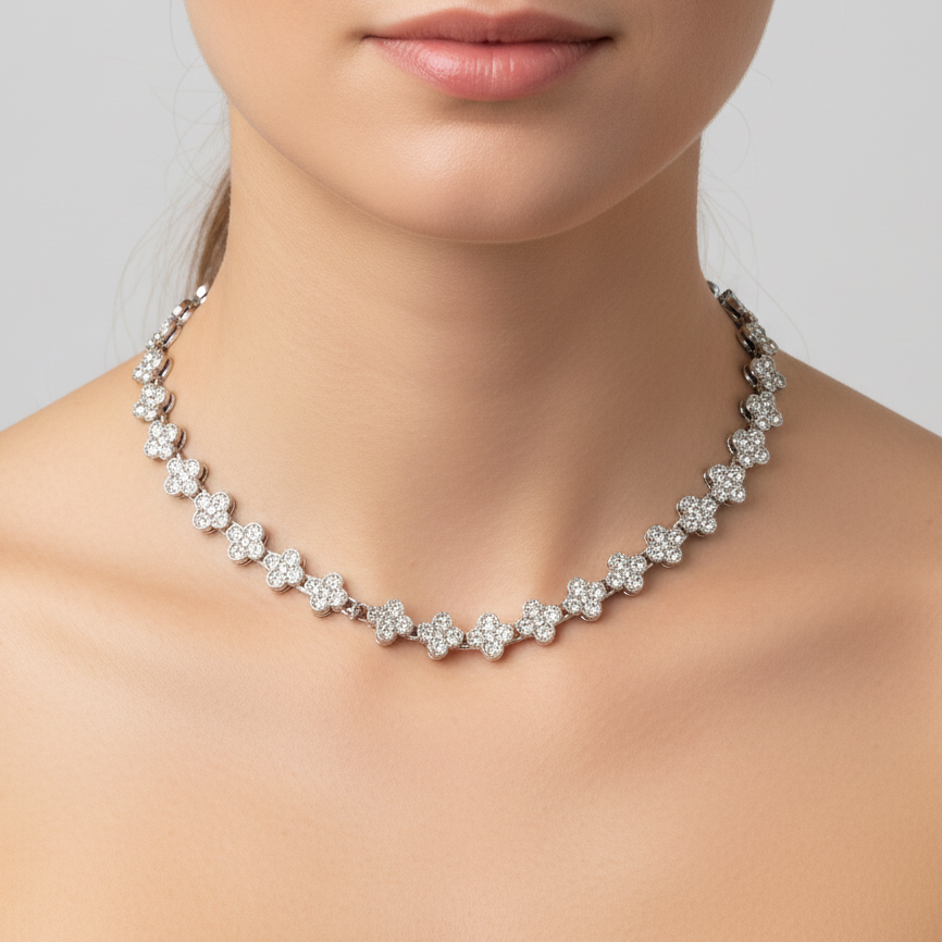 Realizat din otel inoxidabil de calitate superioara, colierul este hipoalergenic, rezistent la oxidare si confortabil de purtat. Luciul metalului argintiu combinat cu stralucirea pietrelor zirconiu cubic transforma colierul intr-o bijuterie ideala pentru evenimente speciale sau purtare zilnica.