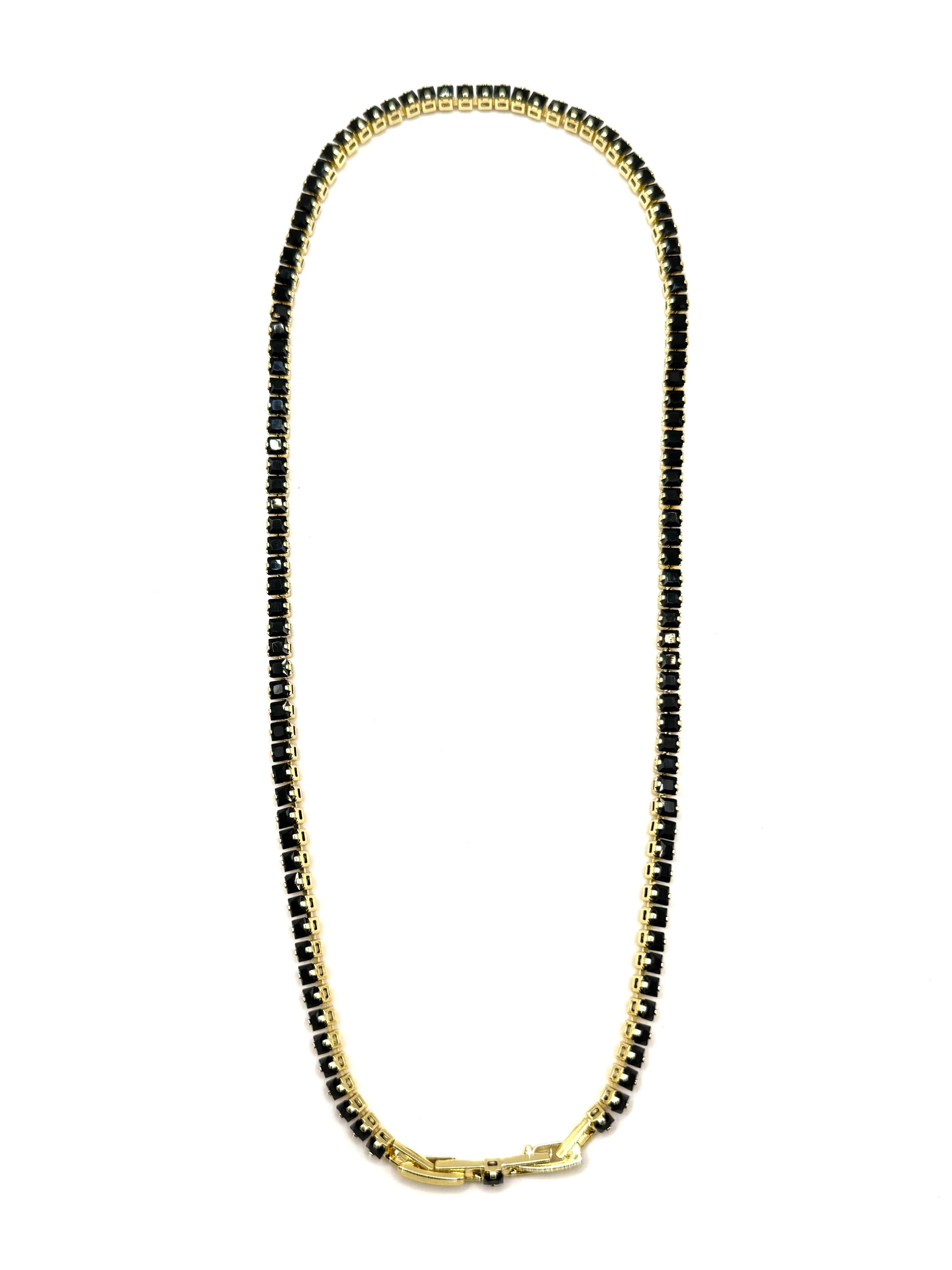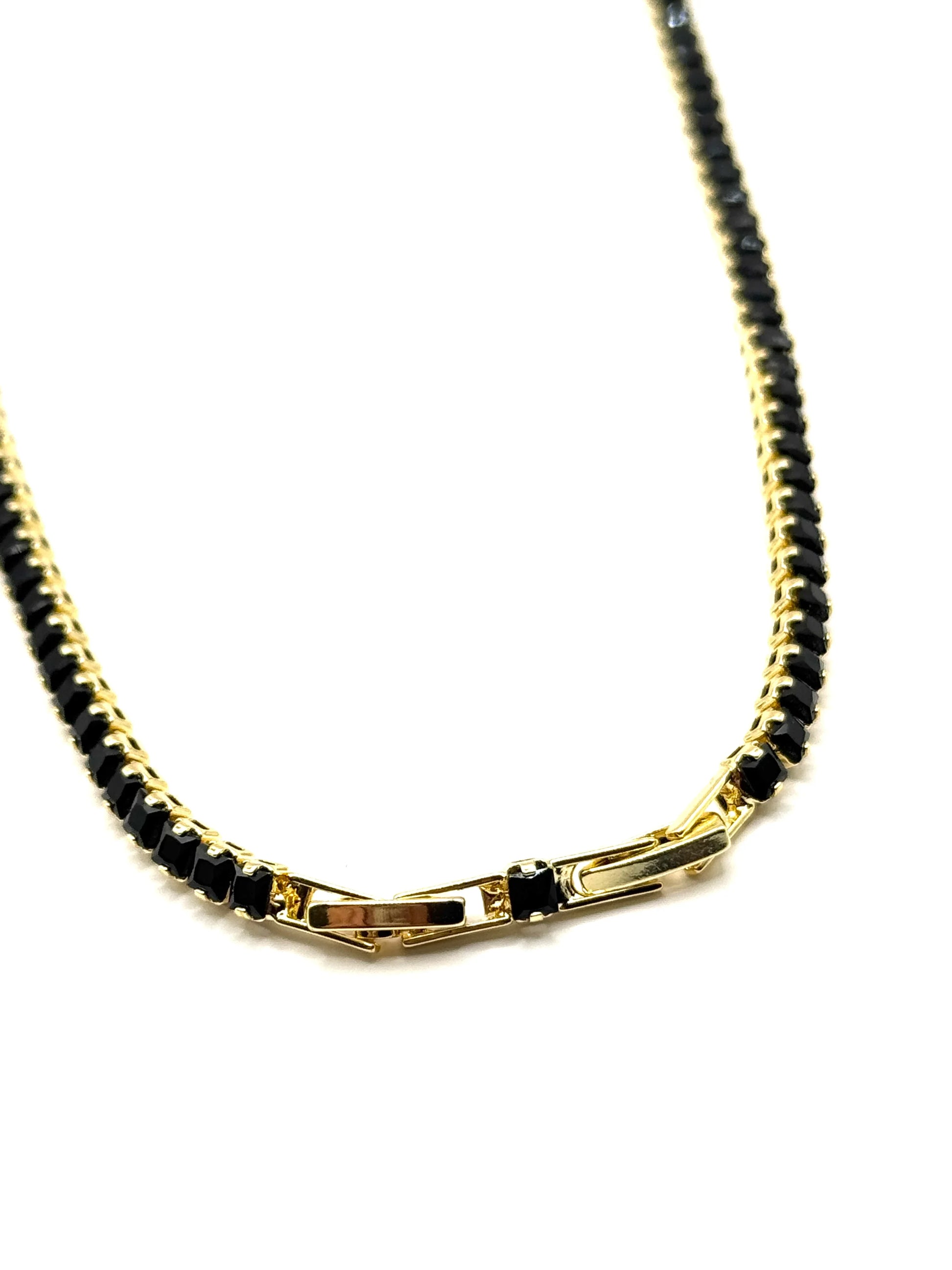 Colier Tennis auriu cu pietre negre din inox 43 cm