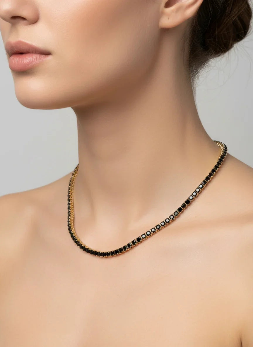 🖤 Colier Tennis auriu cu pietre negre din inox 43 cm – rafinament si stil premium