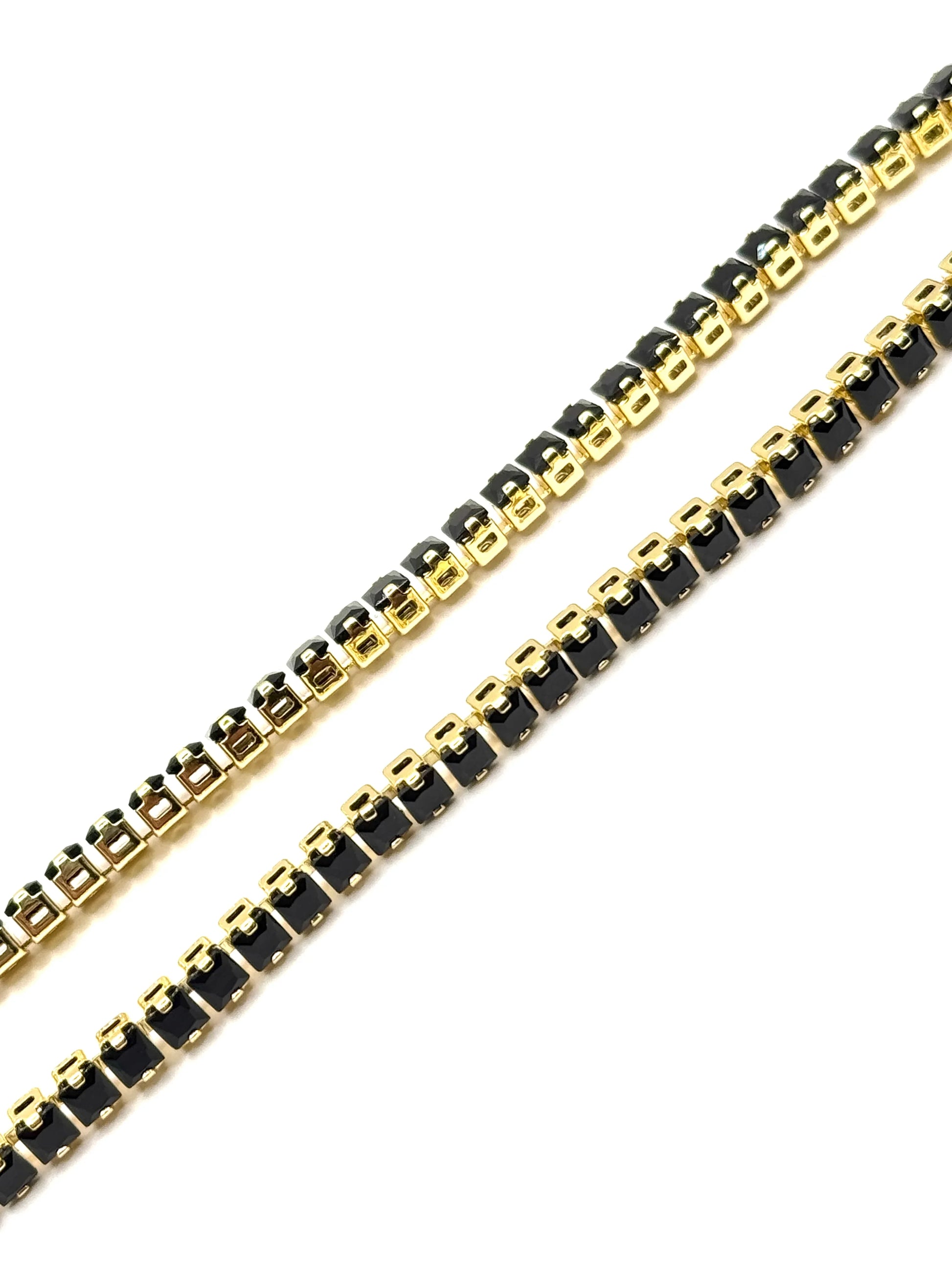 ✨ Design Tennis reinterpretat – pietre negre montate in cadru auriu stralucitor pentru un look premium