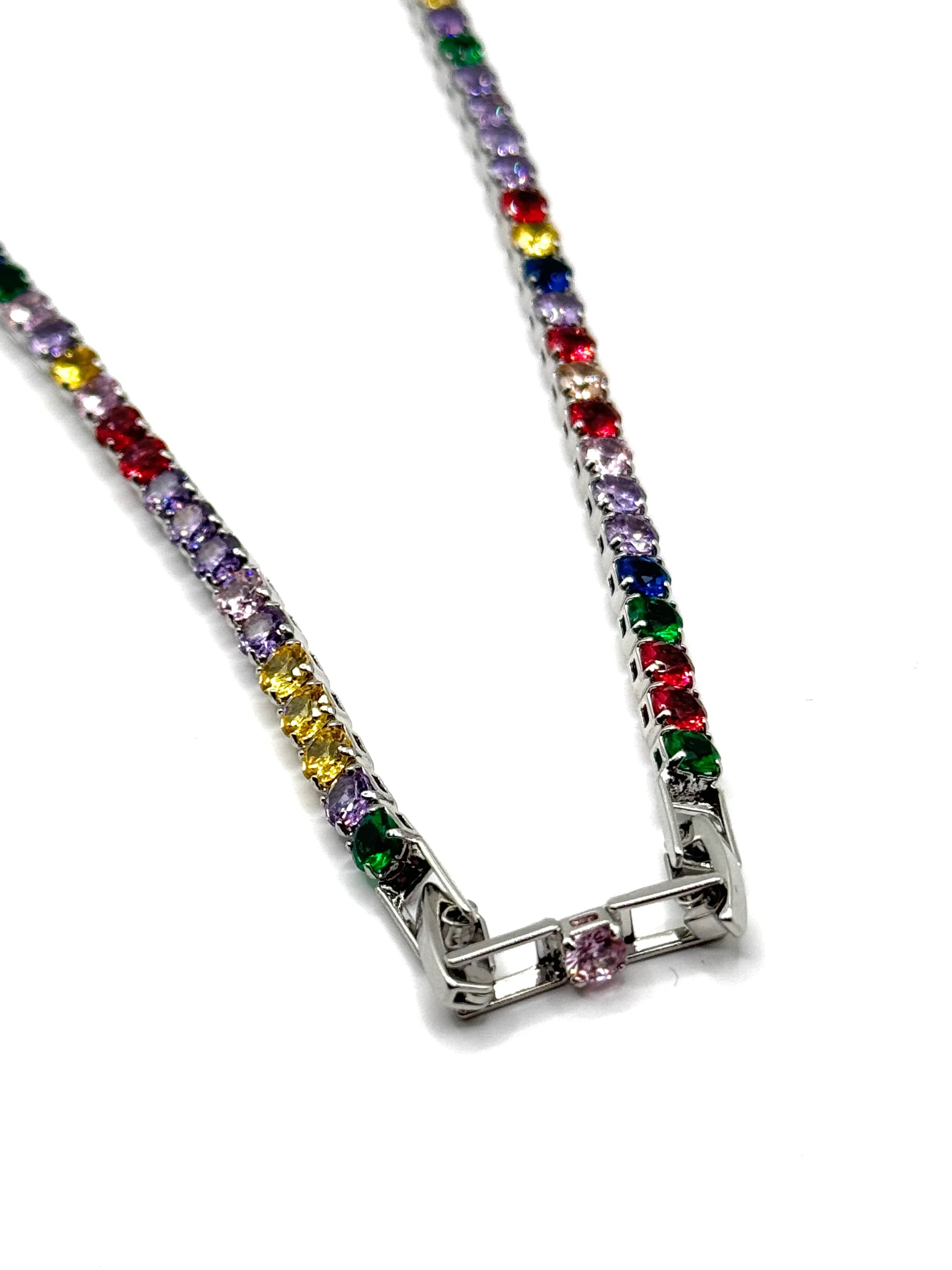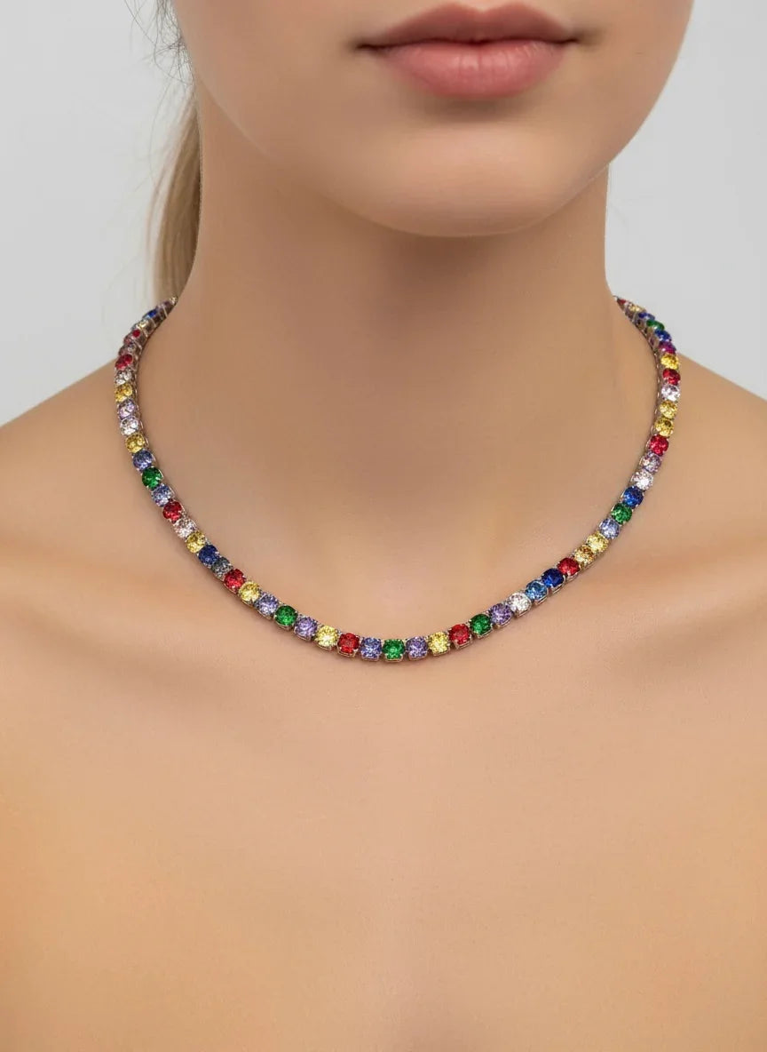 Colierul Tennis multicolor din inox 40 cm este alegerea perfecta pentru cei care vor sa se remarce prin eleganta si originalitate. O bijuterie ce imbina perfect culoarea, stralucirea si rezistenta.