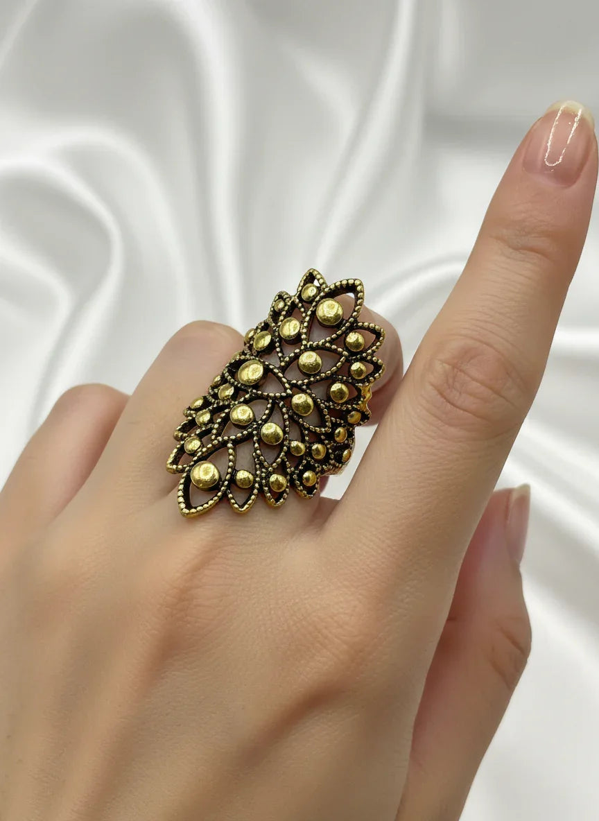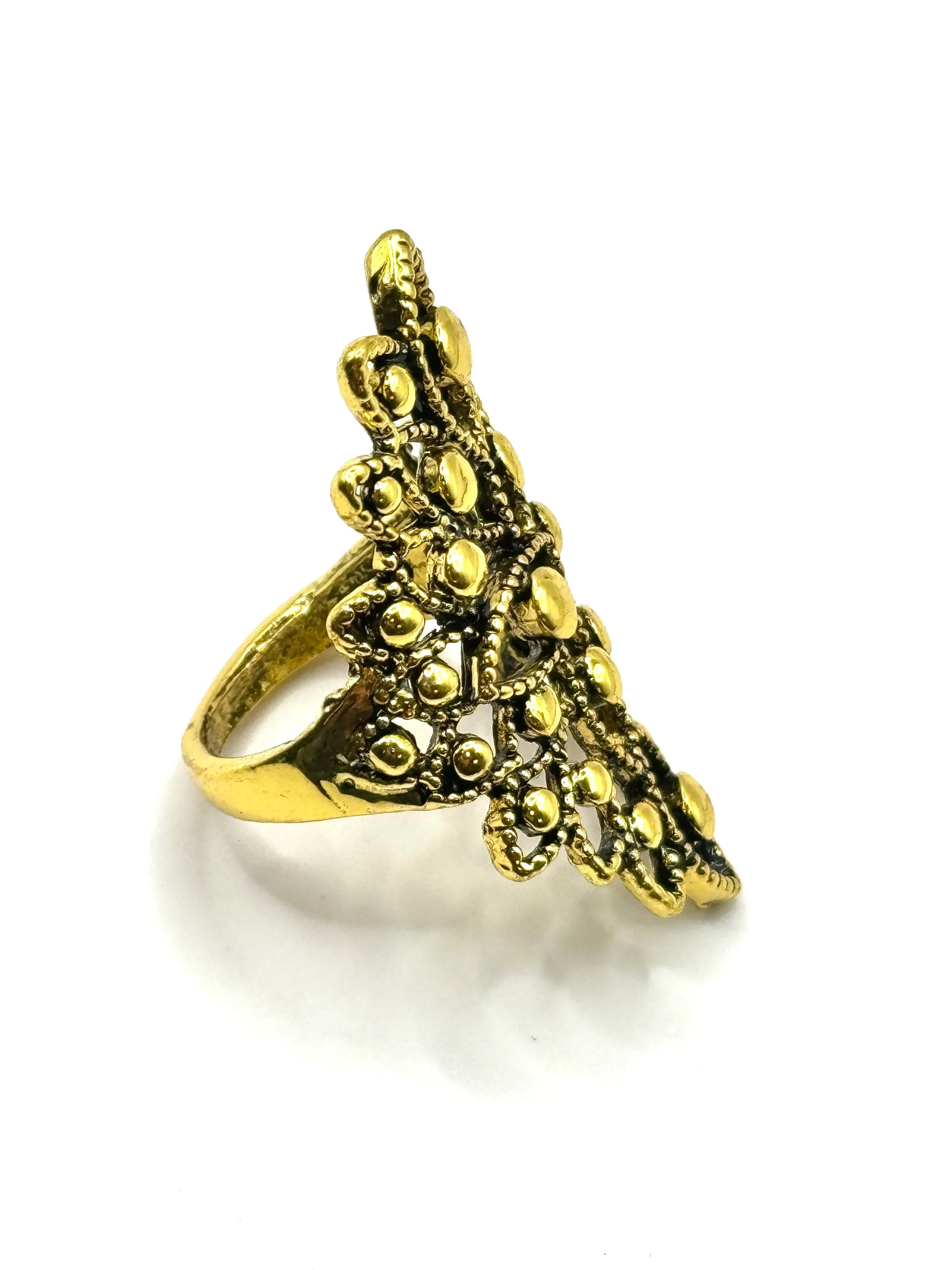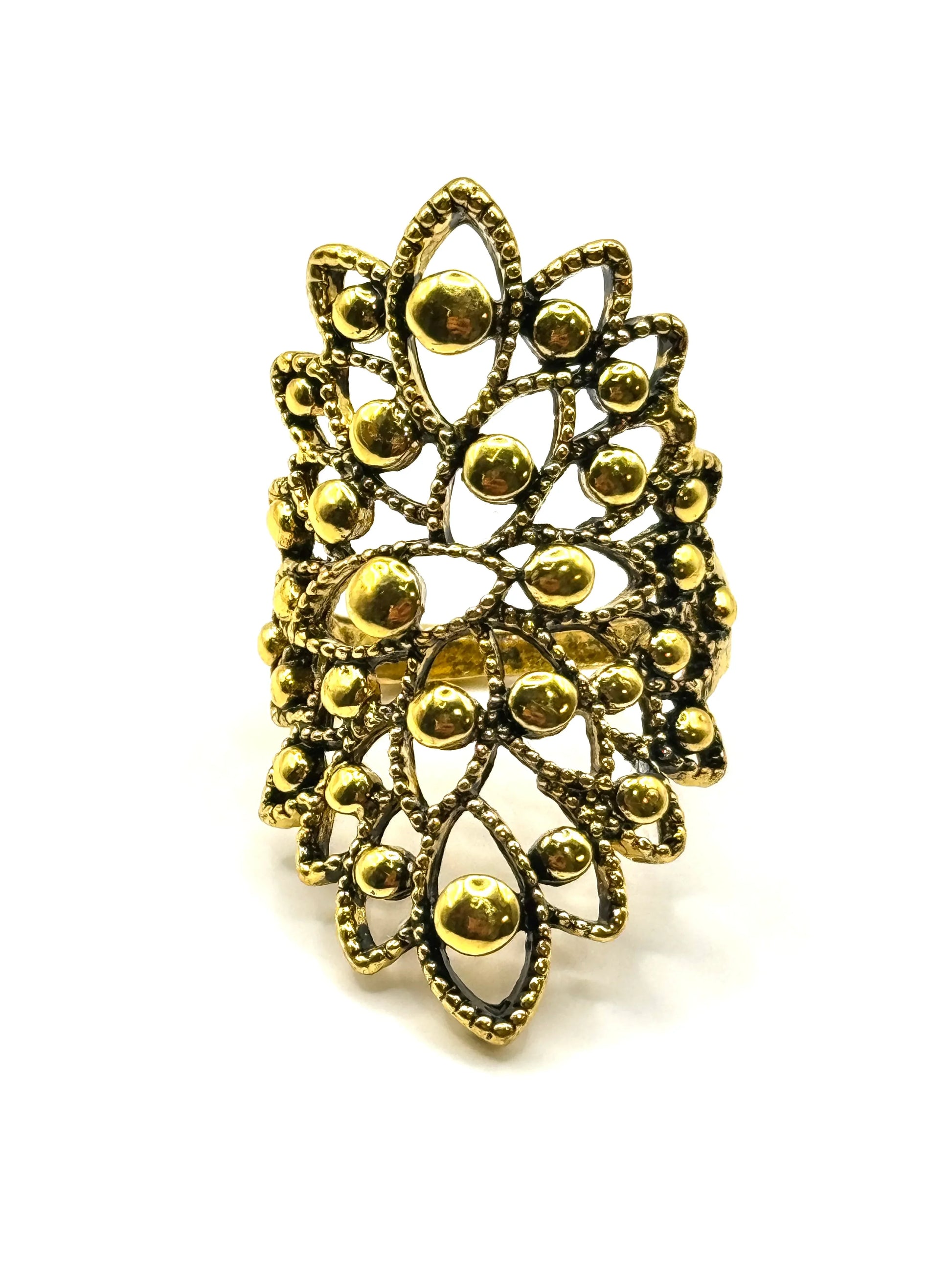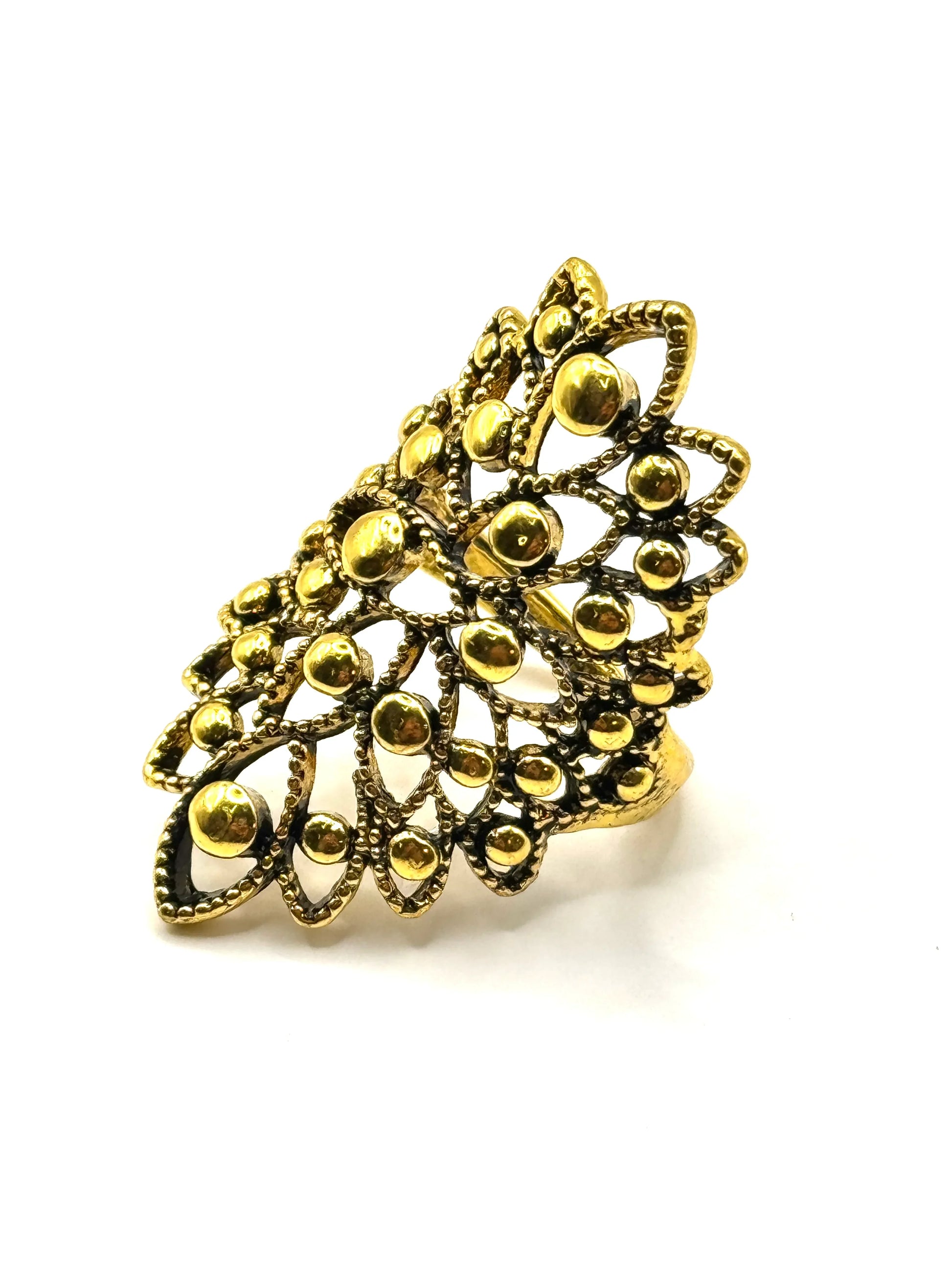 Inelul Flower Dots auriu din inox este o piesa care imbina designul artistic cu durabilitatea metalului de calitate, fiind alegerea perfecta pentru persoanele care iubesc bijuteriile aurii cu personalitate. Adauga o nota de rafinament si stil fiecarui look. Potrivit atat pentru ocazii speciale, cat si pentru purtare zilnica. Un cadou perfect pentru o persoana draga.