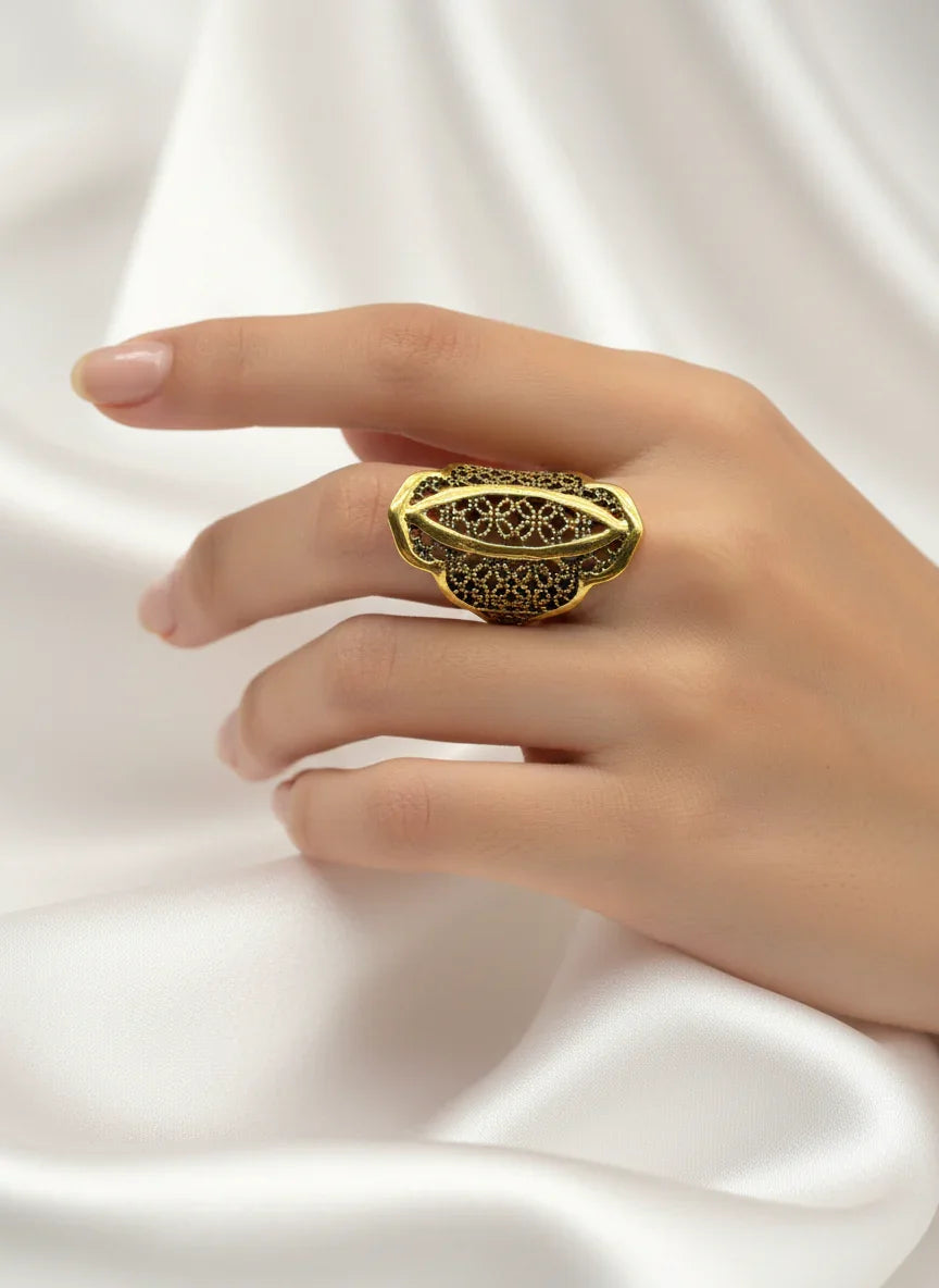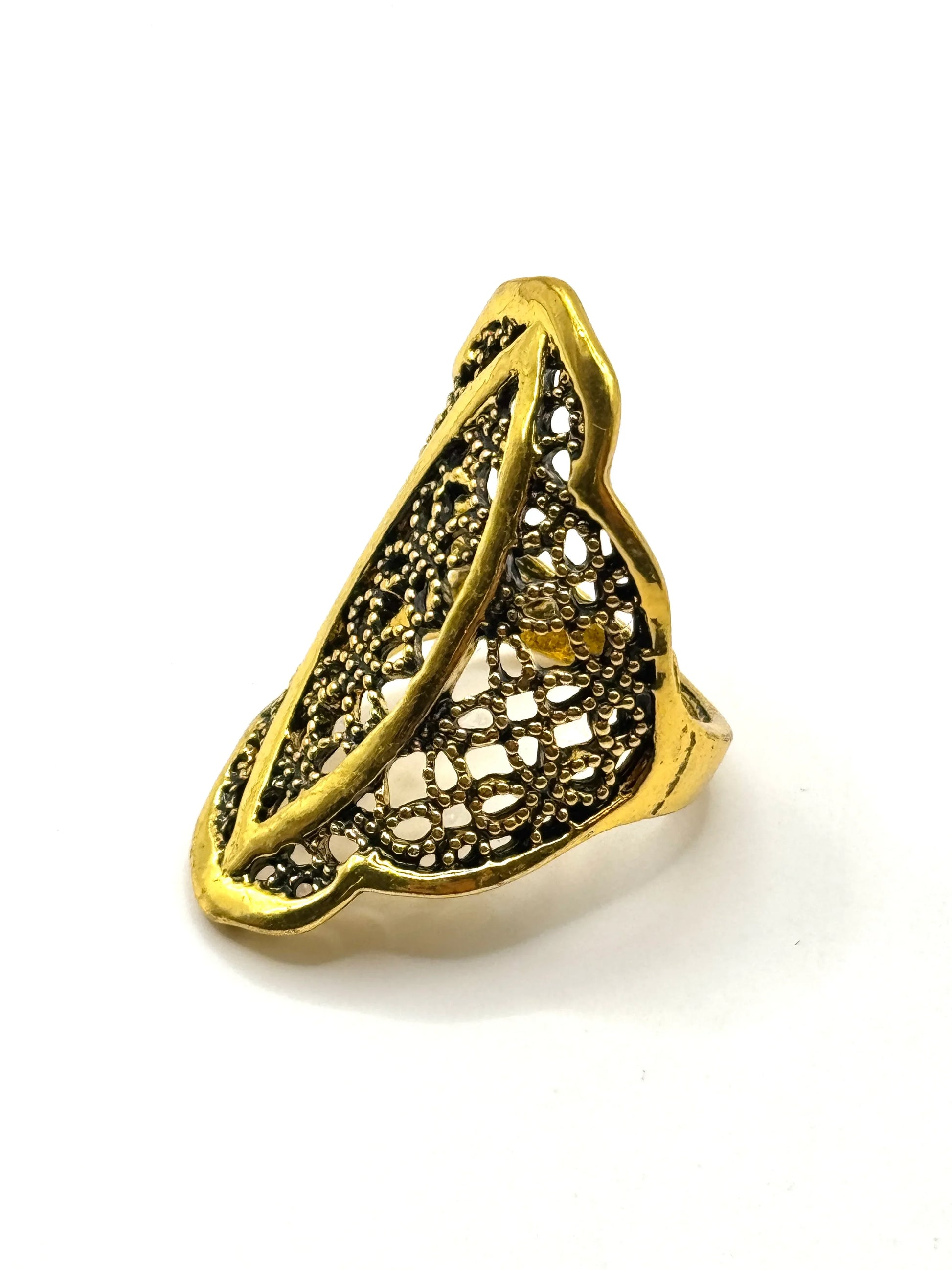 Inelul Marcasite auriu din inox este o piesa care imbina designul artistic cu durabilitatea metalului de calitate, fiind alegerea perfecta pentru persoanele care iubesc bijuteriile aurii cu personalitate. Adauga o nota de rafinament si stil fiecarui look. Potrivit atat pentru ocazii speciale, cat si pentru purtare zilnica. Un cadou perfect pentru o persoana draga.