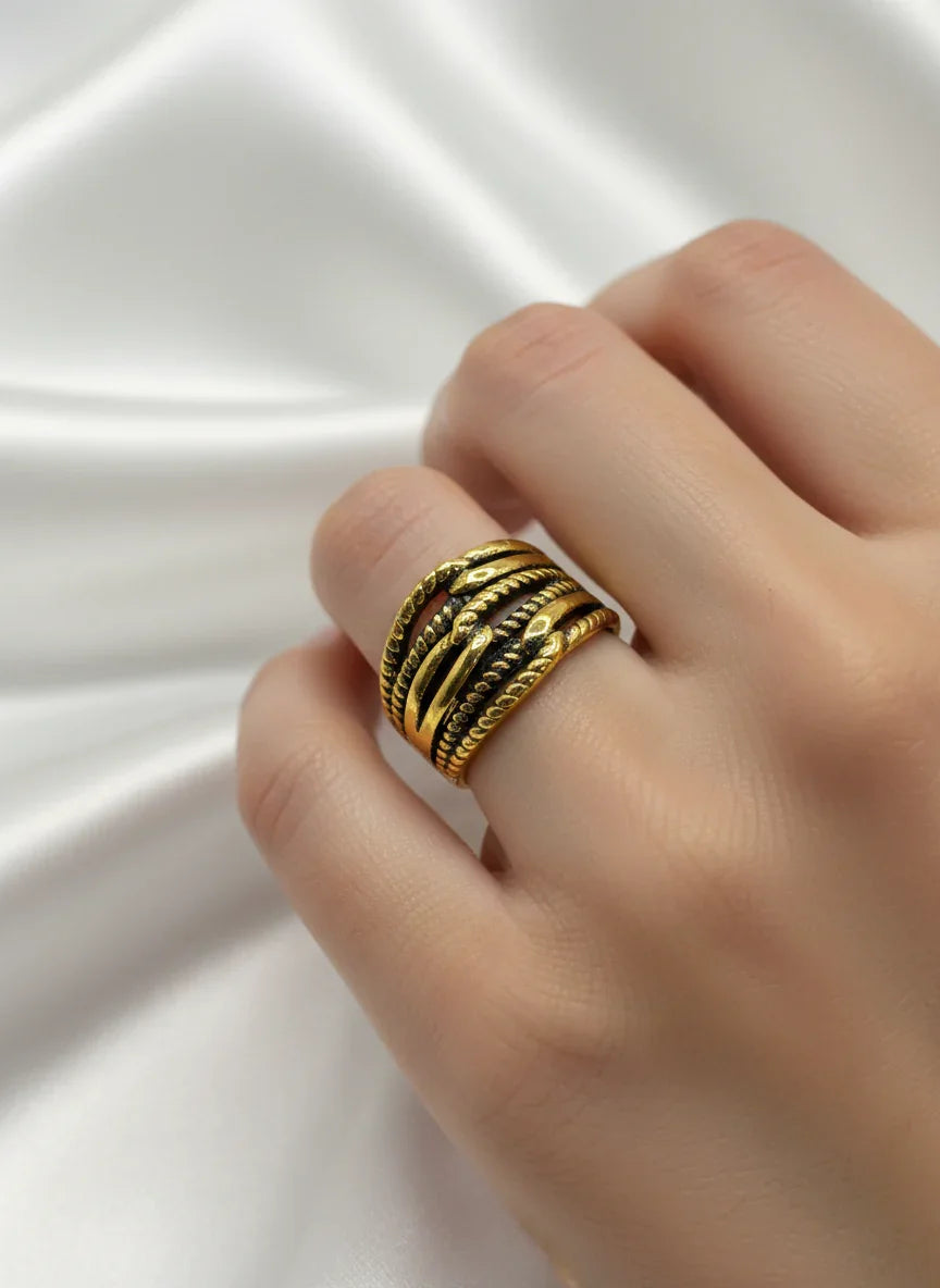 💛 Inel Rope auriu din inox – design sfoara impletita